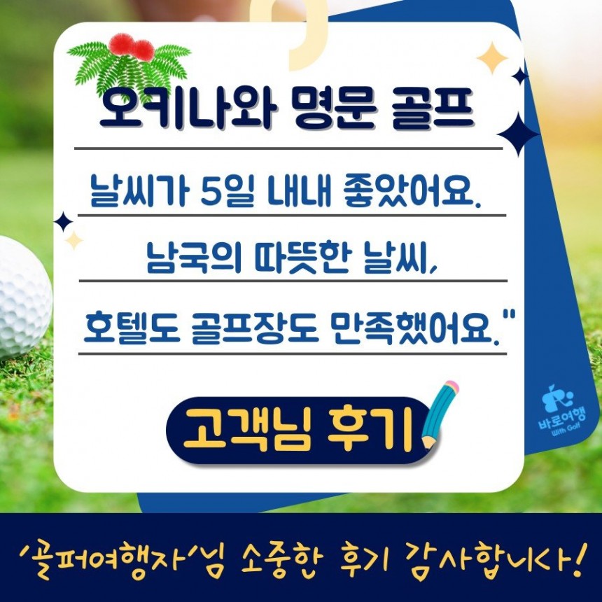 [바로여행 고객님 후기] 다녀온 고객님이 먼저 말해준오키나와 골프를 떠나는 ‘진짜 이유’ ⛳